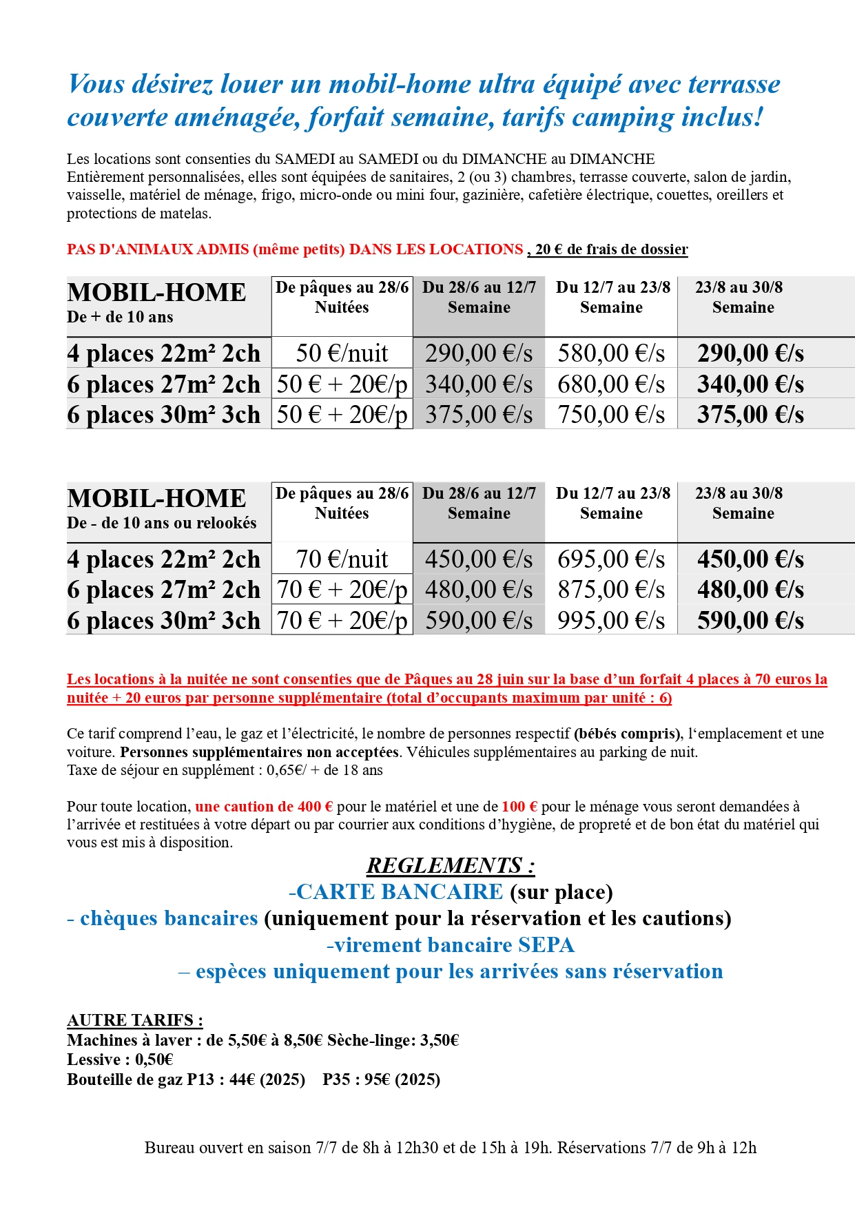 NOS LOCATIONS de Pâques au 1er septembre 2026 :