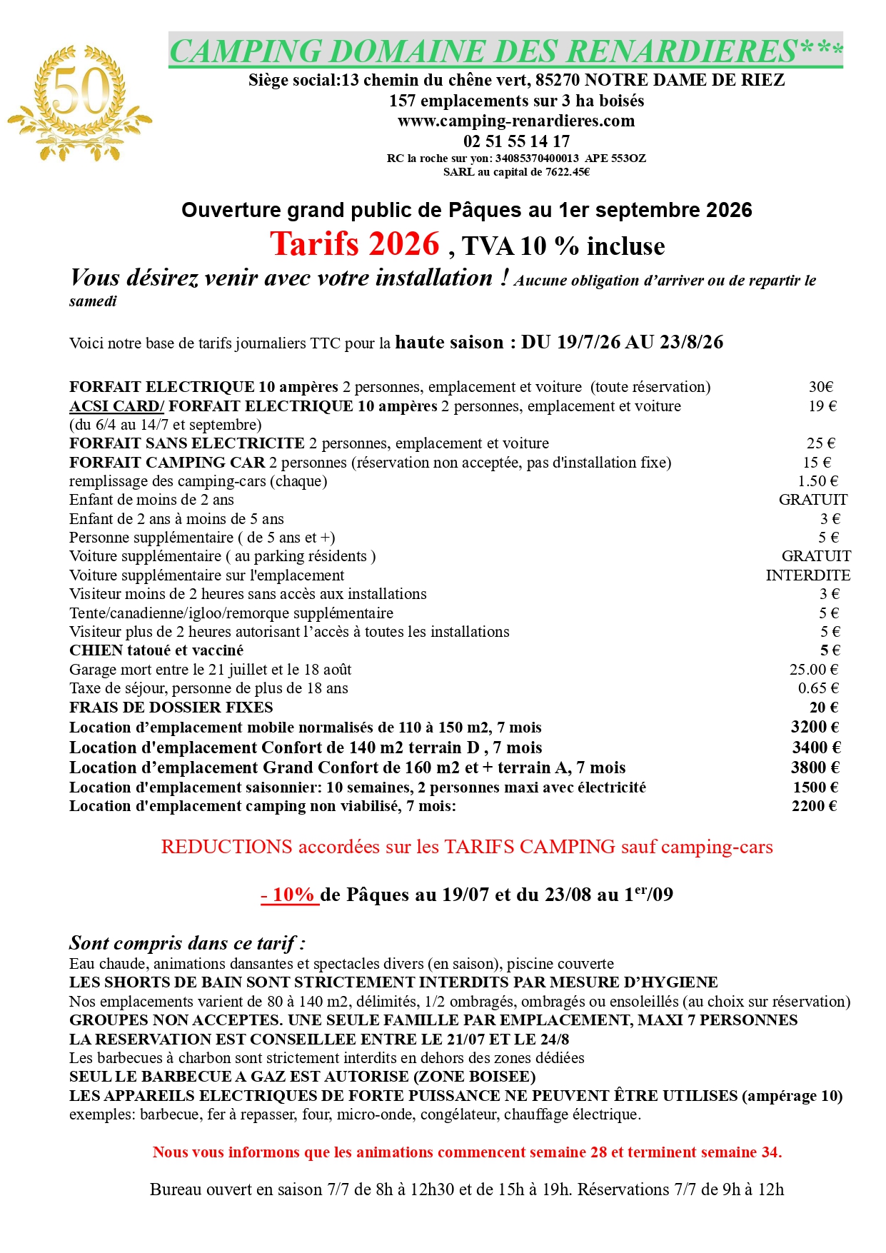 -Afin d'optimiser vos attentes et pour votre confort personnel, des emplacements herbés et délimités vous sont mis à disposition pour installer votre tente, caravane, van ou camping-car.